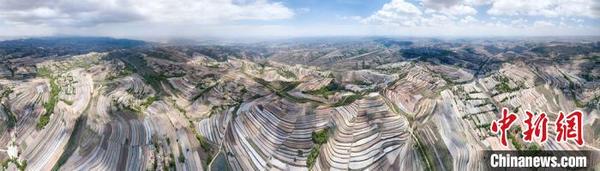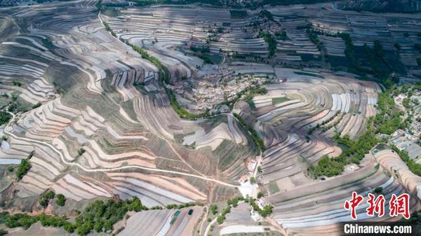 5月14日,甘肅省定西市安定區(qū)梯田廣袤,如同“五線譜”纏繞在黃土高原。定西市位于黃土高原丘陵溝壑地區(qū),是一個(gè)生態(tài)環(huán)境十分脆弱的地方。多年來(lái),定西人堅(jiān)持在生態(tài)文明和梯田建設(shè)上下功夫,總結(jié)并開(kāi)發(fā)多種治理模式,在生態(tài)得以改善的同時(shí),還產(chǎn)生經(jīng)濟(jì)效益。