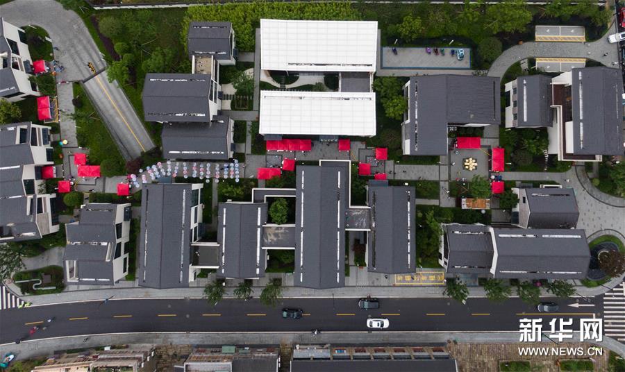 6月6日,空中俯瞰瓶窯老街內(nèi)的非遺館群(無(wú)人機(jī)照片)。新華社記者 徐昱 攝