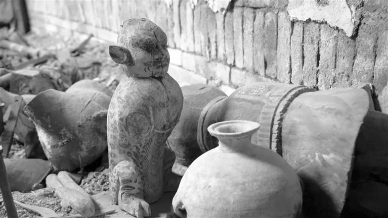 甬道及墓室內(nèi)隨葬品眾多,有彩繪陶、漆木、石、銅、鐵、金銀器及革制和絲麻織品等,共計(jì)220余件組。從發(fā)掘現(xiàn)場(chǎng)來看,這座墓葬保存非常完整,沒有被盜和攪擾的痕跡。