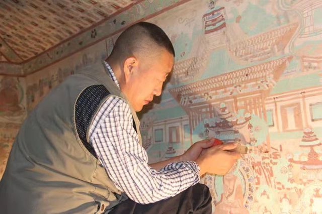 1990年,李云鶴的兒子李波同樣成為了敦煌研究院的文物修復(fù)師。對(duì)于生于敦煌、長于敦煌的李波而言,回到敦煌修壁畫是一件再自然不過的事情,“家里有一位修壁畫的父親,這對(duì)我的影響是極大的。而且這里是我的故鄉(xiāng),我對(duì)敦煌對(duì)莫高窟,有感情也有責(zé)任。”