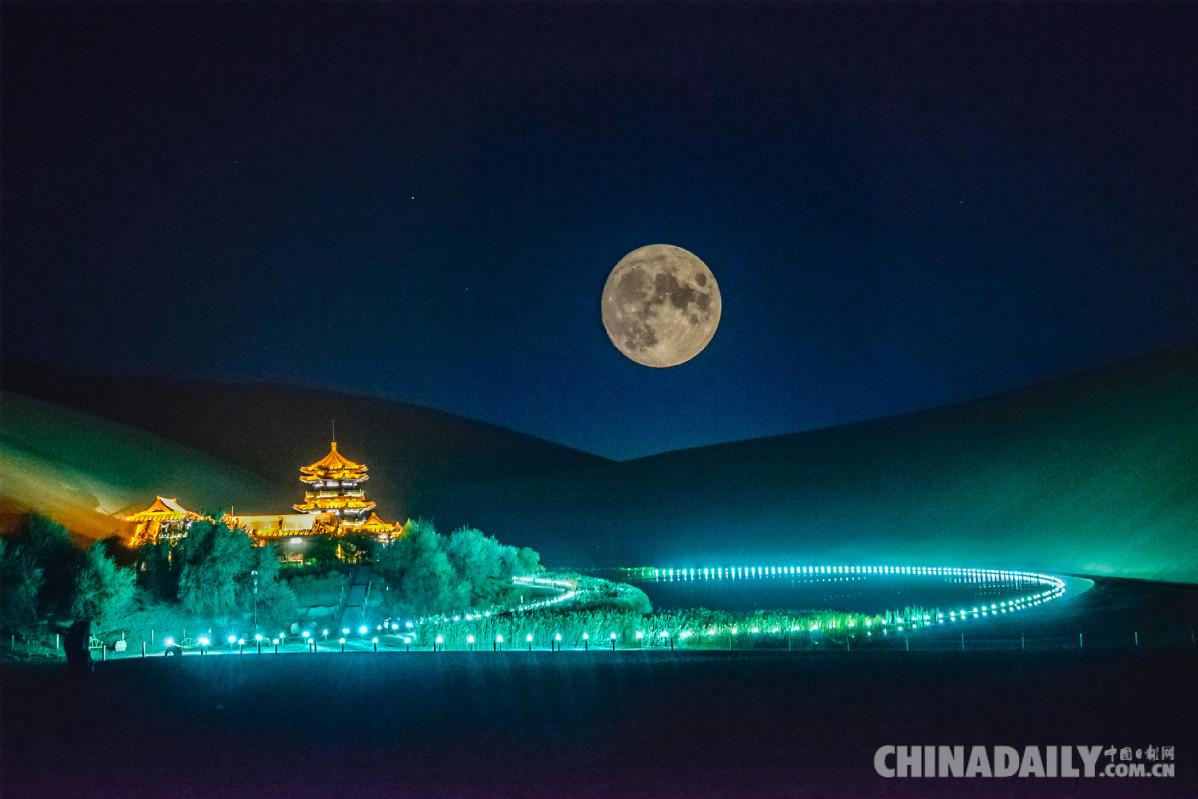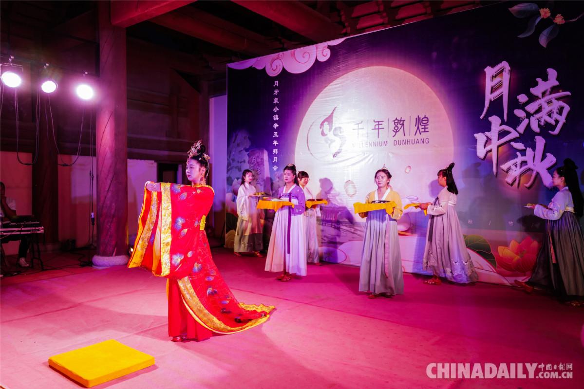 9月21日夜晚,一輪明月升起在大漠敦煌的上空,在中國傳統(tǒng)的中秋節(jié),甘肅敦煌月牙泉小鎮(zhèn)中心廣場(chǎng)舉辦了中秋拜月等民俗活動(dòng)。先舉行了仿古“拜月大典”。伴隨著深沉悠揚(yáng)的樂曲,身穿華麗漢服的參祭女子手捧月餅及各式貢品緩步登臺(tái),在皓月銀輝中虔誠致祭;按照敦煌習(xí)俗,主祭三上香、三祭酒,并于月光與燭光映照之中,向月誦祝。按照傳統(tǒng)儀式祭拜禮成后,主祭將月餅與水果分發(fā)給現(xiàn)場(chǎng)拜月的市民游客,與大家共享中秋拜月祭品。隨后還進(jìn)行了中國傳統(tǒng)民族服裝——旗袍展示、漢服秀、歌舞演出等形式多樣的民俗活動(dòng)。當(dāng)日晚,小鎮(zhèn)人來人往非常熱鬧,眾多敦煌市民和游客參加拜月活動(dòng),受疫情影響,部分活動(dòng)在網(wǎng)上進(jìn)行,不少媒體人,對(duì)敦煌賞月、拜月活動(dòng)進(jìn)行了網(wǎng)絡(luò)直播。