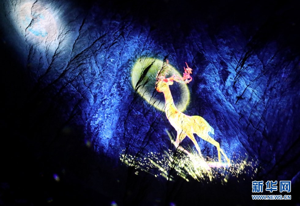 光影投射出的七色鹿形象。新華網(wǎng)發(fā)(王生元 攝)