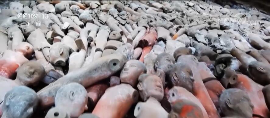 考古人員還發(fā)現,江村大墓的外圍分布著115座外藏坑,呈放射狀分布。從2017年起,考古人員對其中8座外藏坑進行了考古發(fā)掘,出土了陶俑、鐵器、銅器、官印等大量漢代文物,經過專家論證,最終確定該墓為漢文帝霸陵。