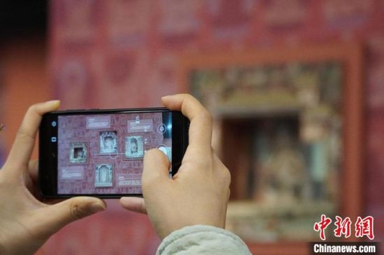 圖為觀眾欣賞數(shù)字復(fù)制壁畫(huà)?!【琶赖┰?攝