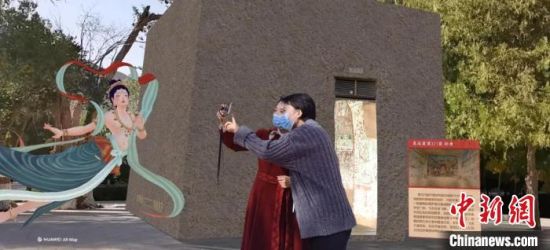 同時,游客還能收獲與眾不同的“打卡照”,在景區(qū)與不同朝代的“飛天”進(jìn)行親密互動,在特殊的場景中還能與九色鹿、3D大佛等虛擬形象合影留念。