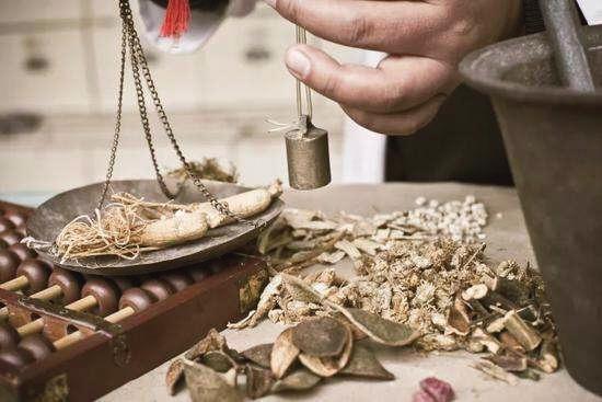 有時趁他空閑, 我便去他的中藥鋪里坐坐,最喜歡聞他藥鋪里散發(fā)的那種清苦的藥草香。而看他抓藥的過程,更是一種視覺享受。每次他先把藥方仔細瀏覽一遍,然后才開始抓藥。值得一提的是,他瞄一眼藥方,就能快速找到相應(yīng)的中藥匣子。對于用量不太精確的藥物,他僅憑手抓,基本準(zhǔn)確。對于用量必須精準(zhǔn)的藥物,他會那樣耐心地放進一個叫“戥子”的小秤里稱一稱,添一點或減一點,然后將藥倒入柜臺上鋪好的麻色毛邊紙里,橫折一下,豎折一下,熟練地包起來,用細細的麻繩扎緊,反復(fù)交代幾句,遞給病人??粗@行云流水的動作,患者的疼痛仿佛也一下減輕了許多。