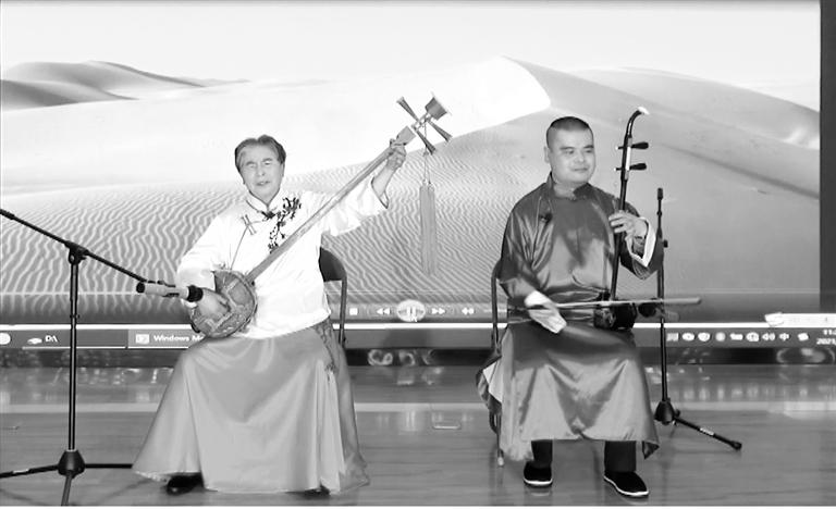 盲人母子馮蘭芳、徐昌輝表演的涼州賢孝《八步沙六老漢,誓把沙漠變綠洲》節(jié)目獲戲曲類三等獎(jiǎng)。 省殘聯(lián)供圖