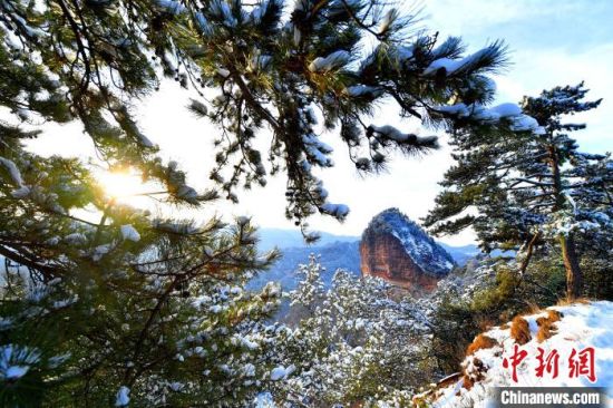 麥積山風(fēng)景區(qū)是中國南北方沉積地層在地表上層的分界線,又是黃河長江兩大流域的分水嶺,雪后景色地貌獨(dú)特。周文濤 攝
