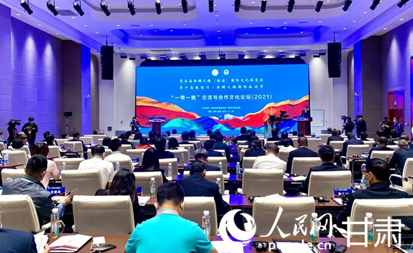 第五屆絲綢之路(敦煌)國際文化博覽會“一帶一路”交流與合作文化論壇(2021)在敦煌國際會展中心舉行。人民網 王文嘉攝