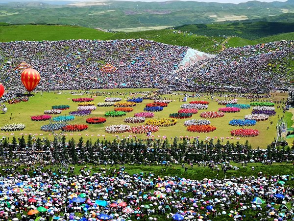 2019年7月30日,在甘肅甘南舉辦的“一會一節(jié)”吸引近20萬名當?shù)厝罕姾陀慰陀^看。甘肅省文旅廳供圖
