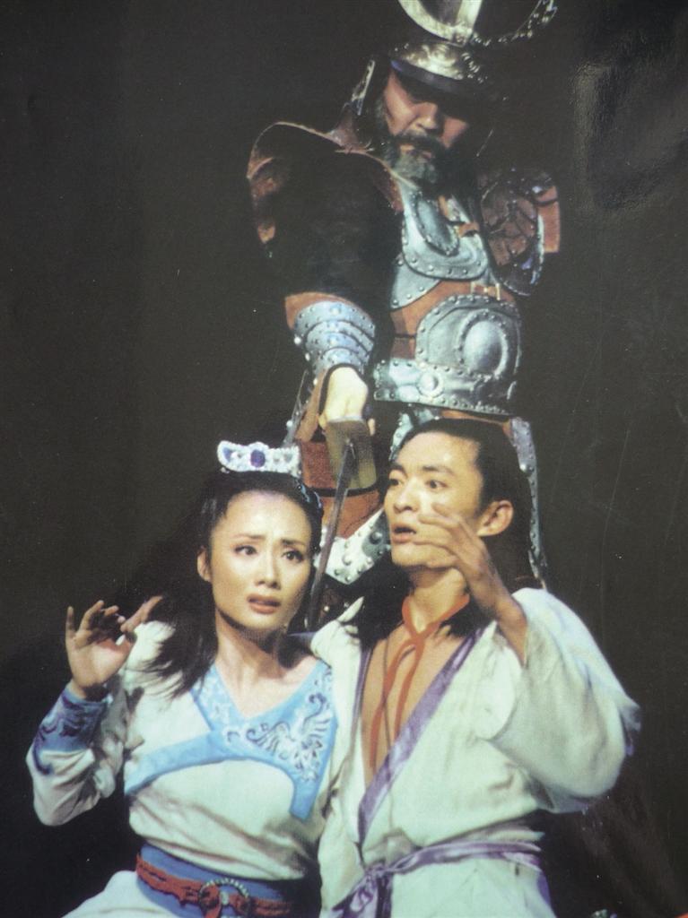 實事上,真正藝術(shù)創(chuàng)作的真諦就是這種“超越”。在藝術(shù)上沒有“超越”,沒有否定,靠復制、模仿就不是藝術(shù)創(chuàng)作的實質(zhì)精神和本質(zhì)意義。《絲路花雨》“國際交流與和平友誼”主題旨意和源自敦煌壁畫的“S型”舞姿風格的創(chuàng)立,《大夢敦煌》對月牙、莫高和大將軍人心人性強烈對比的精湛描述及諸多酣暢淋漓各具特色的組舞群舞的充分展示,均是各自舞劇的優(yōu)長特點乃至藝術(shù)個性; 二者同取材于敦煌的地域范疇, 卻又形成“雙峰并峙”的宏大精彩,實在是中國舞劇經(jīng)典的“雙子奇秀”,載入世界舞劇史冊,實至名歸。