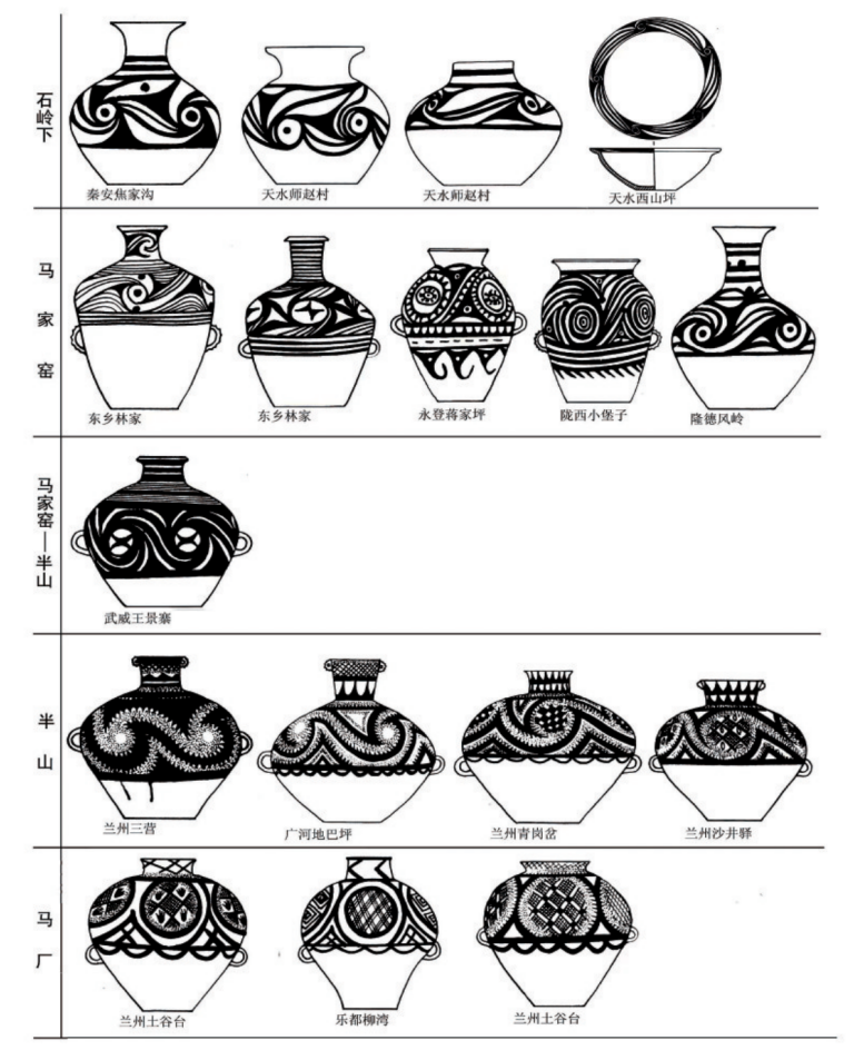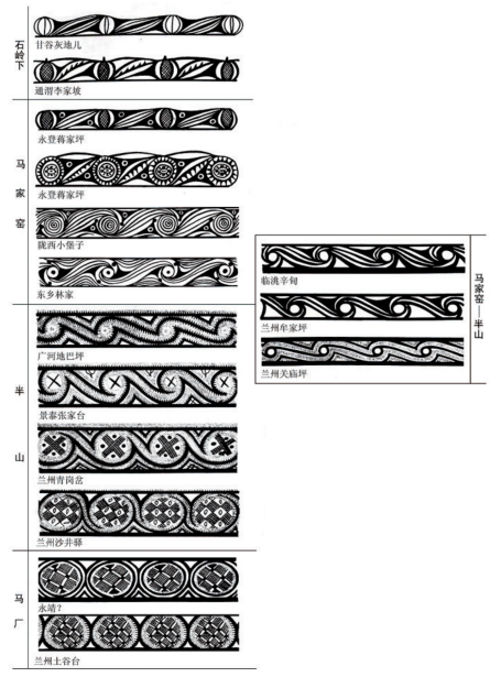 在20世紀(jì)五六十年代,在甘肅及鄰近的青海東部地區(qū)新發(fā)現(xiàn)大量的馬家窯文化遺址,同時(shí)也進(jìn)行了一些發(fā)掘工作,為探索馬家窯文化及彩陶的來(lái)源進(jìn)行了深入研究。關(guān)于馬家窯文化與仰韶文化的關(guān)系,體現(xiàn)在彩陶上的線索非常明確,石興邦先生就此進(jìn)行了探討,他在1962年發(fā)表的一文中認(rèn)為馬家窯文化彩陶受到廟底溝類型彩陶的影響,紋飾母題與演變規(guī)律都有相似之處。嚴(yán)文明先生1978年發(fā)表的《甘肅彩陶的源流》,論及半坡類型向隴東和廟底溝類型向隴西及青海東部的擴(kuò)展,認(rèn)為馬家窯文化彩陶的源起與中原地區(qū)的仰韶文化有關(guān)。
