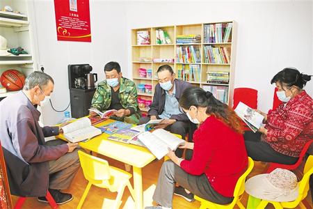 在定西市漳縣鹽井鎮(zhèn)杜家莊村農(nóng)家書屋里,村民正在閱讀書籍。新甘肅·蘭州晨報(bào)記者 田蹊