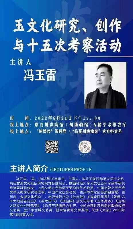 為認(rèn)真貫徹落實(shí)省第十四次黨代會精神,進(jìn)一步弘揚(yáng)中國玉文化和民族精神,推動(dòng)玉文化傳承及玉文化文創(chuàng)產(chǎn)業(yè)發(fā)展。6月21日下午,甘肅文化發(fā)展研究院常務(wù)副院長馮玉雷受邀在臨夏州彩陶館(州博物館)學(xué)術(shù)報(bào)告廳作了題為《玉文化研究、創(chuàng)作與十五次考察活動(dòng)》的學(xué)術(shù)講座。