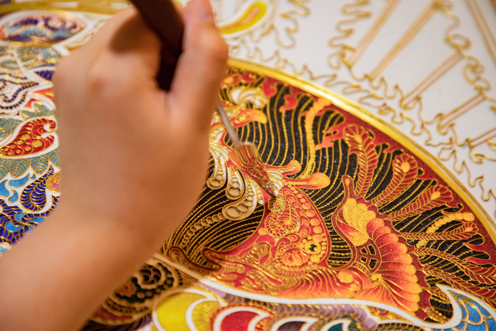 此后30多年,李海明不斷傳承創(chuàng)新,將排絲、壘絲、螺旋絲、柱狀絲等鑲嵌技法引入掐絲琺瑯?biāo)囆g(shù),利用100多種基礎(chǔ)琺瑯釉料調(diào)制出4000多種過渡色及配色,攻克了琺瑯壁畫釉料脫落的難題,提升了琺瑯壁畫作品的藝術(shù)價(jià)值和收藏價(jià)值。截至目前,他共創(chuàng)作2000多幅掐絲琺瑯壁畫作品,先后30多次獲國(guó)家級(jí)和省級(jí)工藝美術(shù)類大賽金獎(jiǎng),部分作品被國(guó)家博物館收藏。