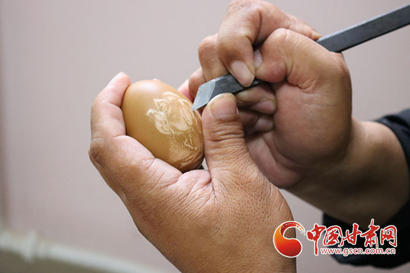 教學(xué)之外,劉財(cái)萬(wàn)對(duì)傳播絲路文化同樣興趣濃厚。2018年劉財(cái)萬(wàn)作為甘肅省殘聯(lián)代表之一參展絲綢之路(敦煌)國(guó)際文化博覽會(huì),并為會(huì)上沿線(xiàn)城市所展示的歷史文化、民俗風(fēng)情、現(xiàn)代文化創(chuàng)新成果所折服。從那之后,劉財(cái)萬(wàn)開(kāi)始將絲路文化融入蛋雕之中,讓蛋雕成為絲路文化歷史傳承的創(chuàng)新載體。