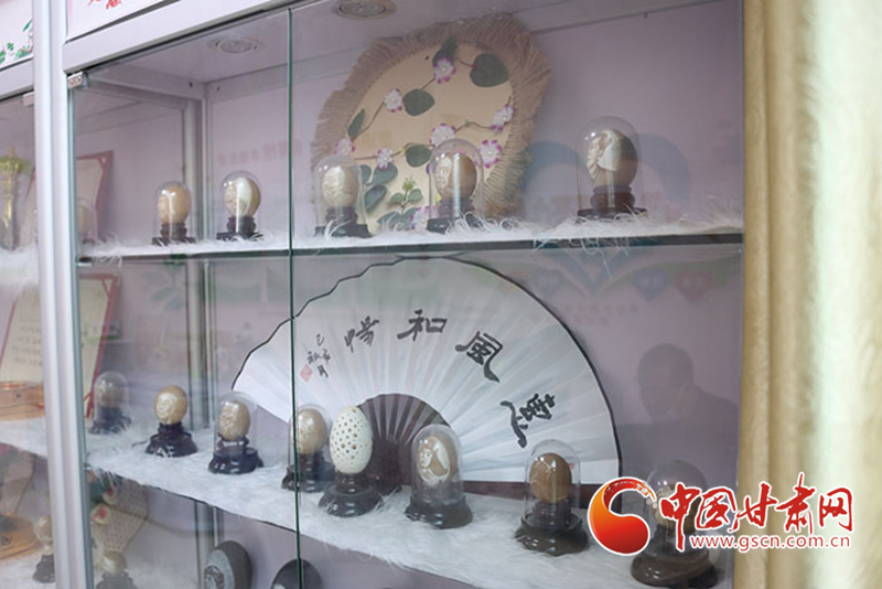 自2018年開(kāi)始,蘭州新區(qū)新安社區(qū)為劉財(cái)萬(wàn)的蛋雕作品專(zhuān)設(shè)了社區(qū)展柜,劉財(cái)萬(wàn)可以為前來(lái)參觀(guān)的人們講解作品內(nèi)涵、展示創(chuàng)作過(guò)程。對(duì)劉財(cái)萬(wàn)來(lái)說(shuō),這不但可以更好傳播蛋雕文化,也是分享自己生命體悟、生活方式的一個(gè)出口。