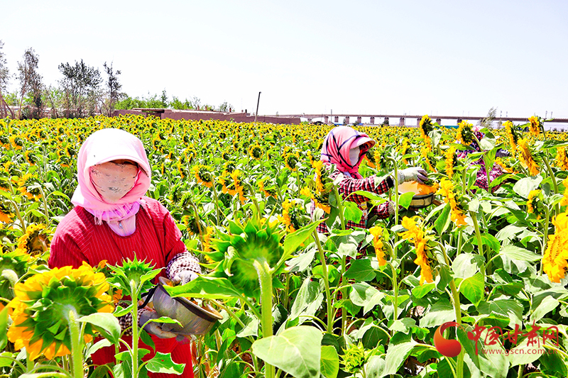 “今年,我們長莊村結(jié)合高標(biāo)準農(nóng)田建設(shè)項目的實施,年初流轉(zhuǎn)土地一千多畝,與合作社合作引進葵花制種一千多畝,這既增加了我們村集體的經(jīng)濟收入,而且就近吸納勞動力,每天有五六十人在葵花基地打工,滿足了老百姓就地務(wù)工的需求。”臨澤縣新華鎮(zhèn)長莊村黨支部書記宋洋說。