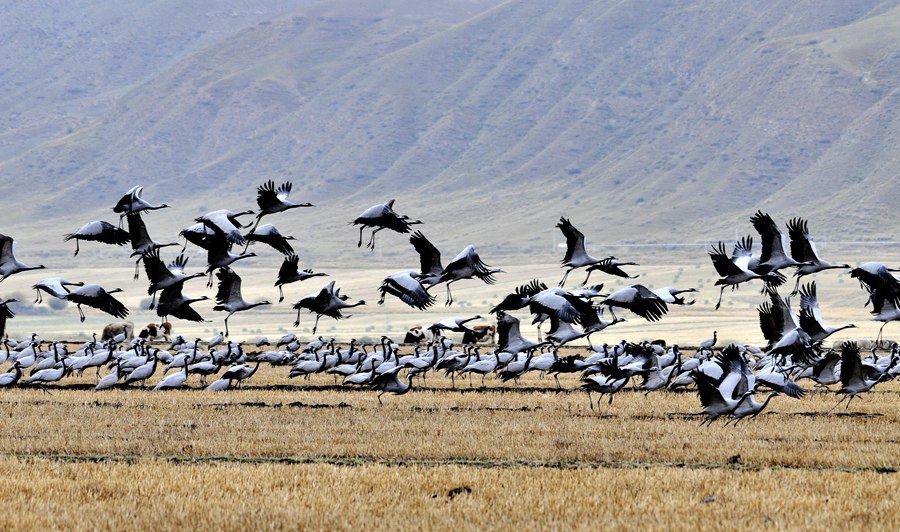 靈動!大批蓑羽鶴祁連山下起舞