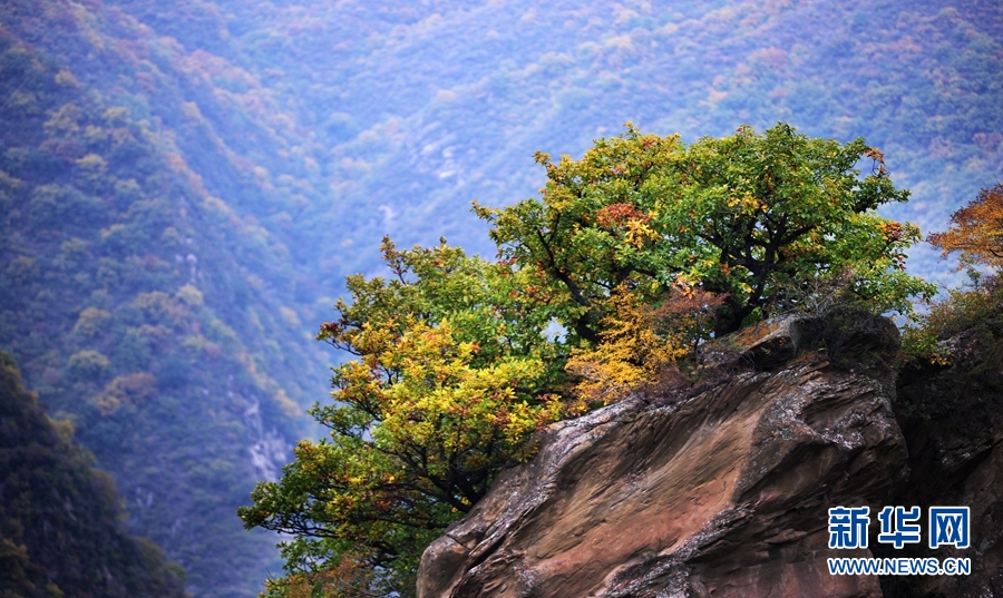 近日,甘肅省平?jīng)鍪谐缧趴h五龍山草木色彩繽紛,成為一道如詩如畫的美麗風(fēng)景。(文字:王紅剛 拍攝:張志平)