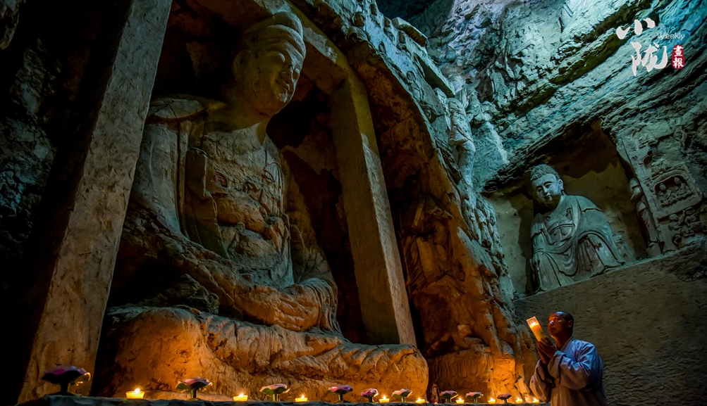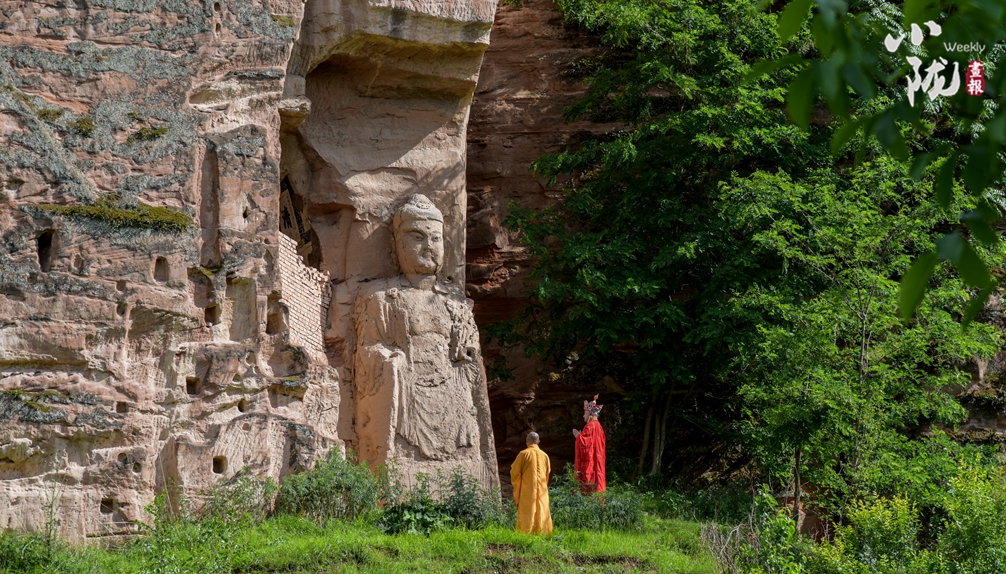 高聳的王母宮被涇河、汭河擁抱,回山上回屋里的磨崖浮雕,傳說(shuō)是《山海經(jīng)》里西王母的最原始的形象。始鑿于北魏太和二年的王母宮石窟現(xiàn)存大小佛像200多尊,雕像、壁畫(huà)精美絕倫。