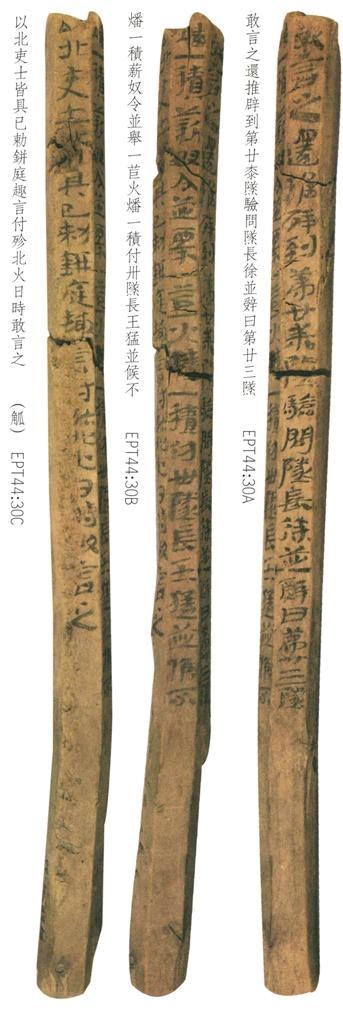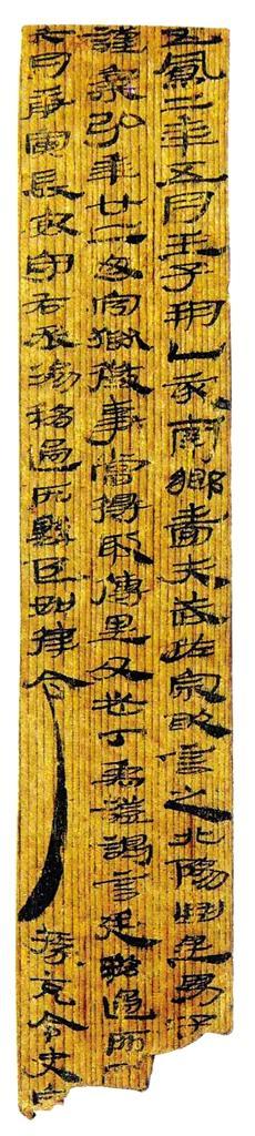 古時在竹簡上記事,先以火烤青竹,使水分如汗?jié)B出,便于書寫,并免蟲蛀,這道工序叫汗青,將竹火炙去汗后,刮去青色表皮,以便書寫和防蠹?xì)⑶啵@就是殺青,殺青完成后,簡才能供書寫所用。漢劉向《別錄》中說:“殺青者,以火炙簡令汗,取其青易書,復(fù)不蠹,謂之殺青,亦謂汗簡。”古人以“汗青”喻史書,如文天祥就寫有“人生自古誰無死,留取丹心照汗青”的詩句。木簡是否也存在類似的“殺青”工序, 文獻(xiàn)沒有記載, 陳夢家考察武威出土的木簡, 認(rèn)為除少數(shù)受潮彎曲外, 十分之九都是平直的, 是經(jīng)過風(fēng)干工序的。