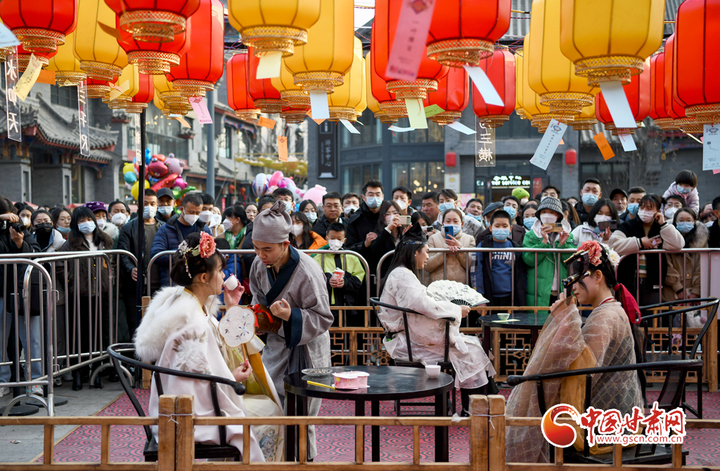 2月5日,甘肅省蘭州市七里河區(qū)蘭州老街,游人如織,格外熱鬧,人們賞舞獅、看表演 、猜燈謎、品美食,處處洋溢著熱騰騰的“煙火氣”。春節(jié)期間,蘭州老街開啟多場景布局、多業(yè)態(tài)融合、沉浸式消費(fèi)等新春購物盛宴,吸引大量市民游客前來消費(fèi)游玩,消費(fèi)旺文旅熱,老街成為城市商業(yè)、文化和旅游的地標(biāo)。
