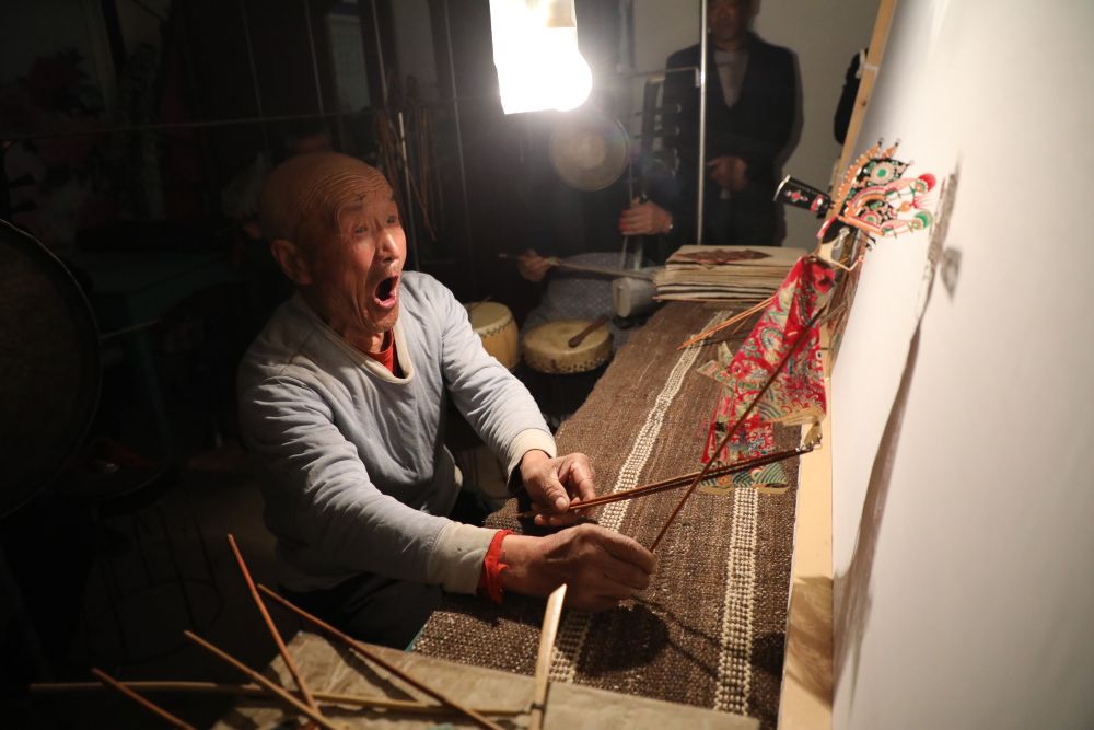 敬廷佑正在進(jìn)行道情皮影表演。新華社記者 張睿 攝