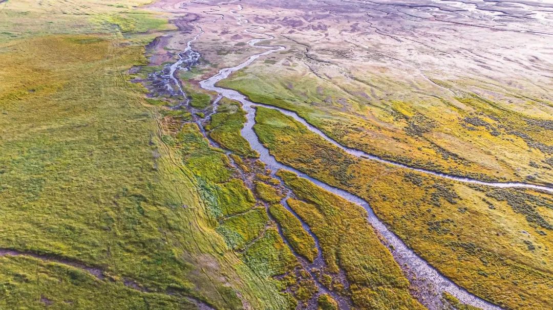 祁連山下的河流穿過山谷流向沙漠,在山前形成一個又一個壯觀的沖積扇,錯雜縱橫的支流默默滋養(yǎng)著土地,讓隴原萌生出更多的綠意。黃河流經瑪曲,繞出180度的“九曲黃河第一彎”,海拔3400米的高原上,也有著奔騰壯闊的蜿蜒。