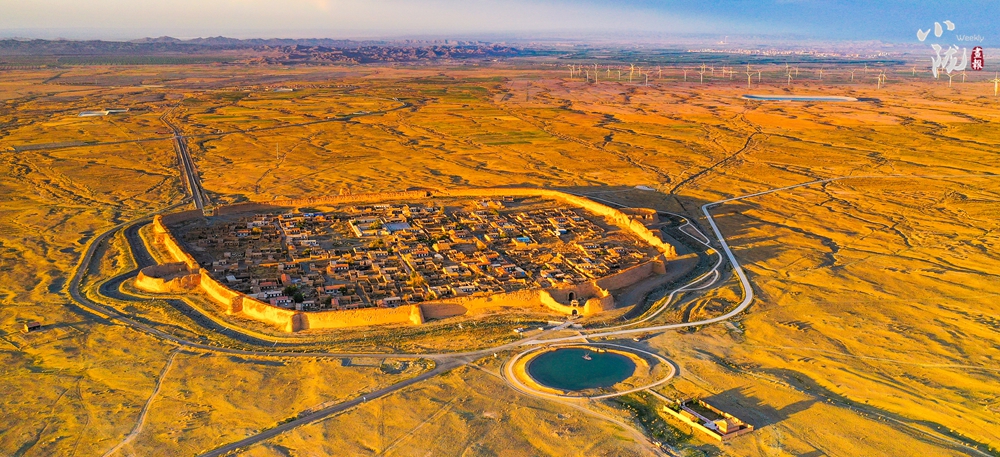 永泰古城堡墻由黃土夯筑而成,周長1717米,墻高12米,城基厚6米,占地面積318畝。從高處俯視,整座城確實(shí)狀若一只巨龜伏在戈壁灘上,維妙維肖。龜城首尾足爪俱全,將其每個(gè)部位在軍事上的應(yīng)用都發(fā)揮到了極致。