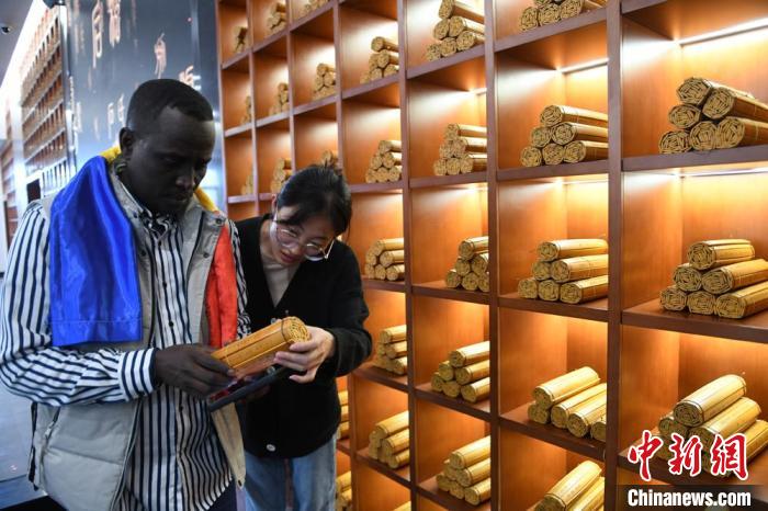 圖為游客在大漢賦館內(nèi)體驗閱讀漢簡(復(fù)制品)。 戴文昌 攝