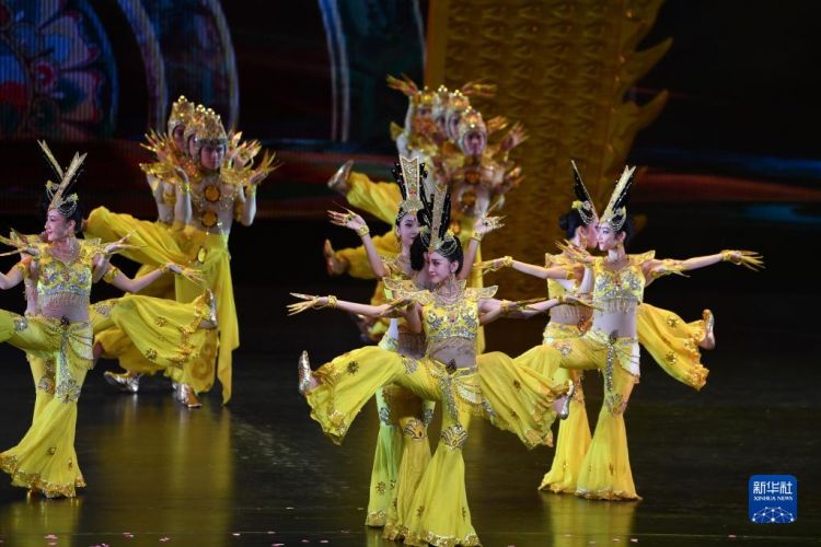 中國殘疾人藝術(shù)團演員在敦煌大劇院表演大型情景音畫劇《千手千眼》(6月18日攝)。