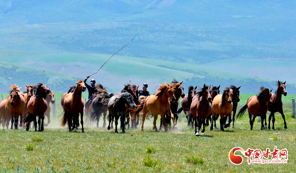 7月25日,位于祁連山北麓的甘肅省張掖市山丹馬場駿馬奔騰,吸引了眾多游客駐足觀賞。
