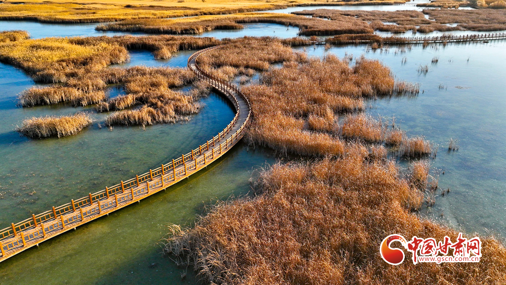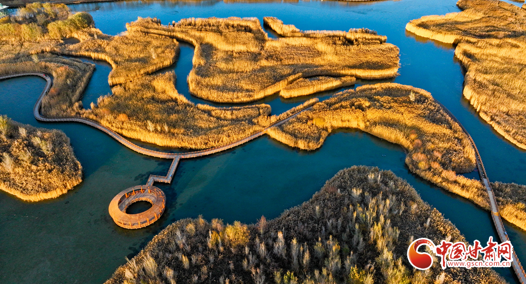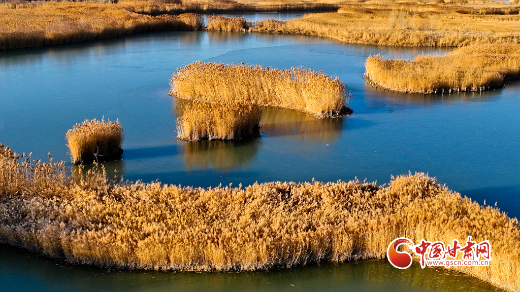 初冬時節(jié),張掖黑河濕地國家級自然保護區(qū)的蘆葦、蒲草等植物在秋風(fēng)、冬霜的吹拂下都變成了金黃色,密密的蘆花舞動著裊娜的身姿,倩影婆娑,蘆葦叢里鳥鳴啾啾,整個濕地成為了一片金色的童話世界,讓人產(chǎn)生無限遐思。
