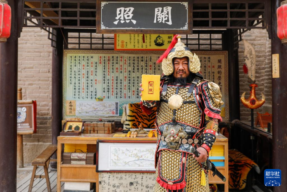 光頭絡(luò)腮胡的李森身披甲胄,在景區(qū)內(nèi)扮演明朝嘉峪關(guān)最高軍事長(zhǎng)官,為游客簽發(fā)文創(chuàng)產(chǎn)品“關(guān)照”(通關(guān)文牒)。自2001年起,他在嘉峪關(guān)“守關(guān)”20多年,親眼見(jiàn)證了嘉峪關(guān)旅游業(yè)的發(fā)展變化。