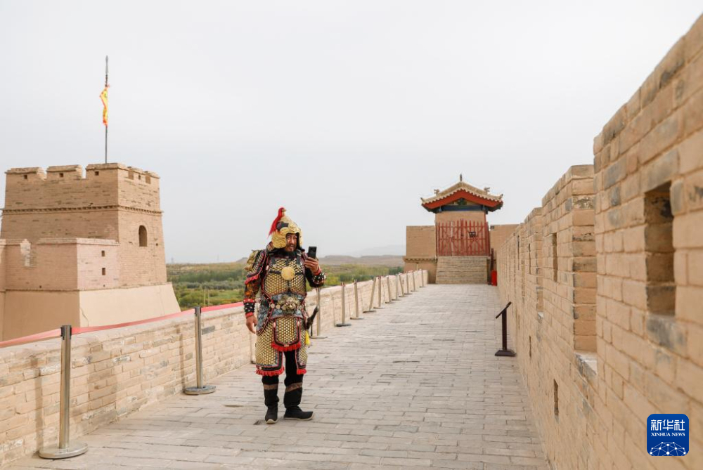 9月26日,李森在拍攝宣傳甘肅嘉峪關(guān)關(guān)城景區(qū)的短視頻,他在短視頻平臺(tái)已有40多萬(wàn)粉絲。新華社記者 方欣 攝