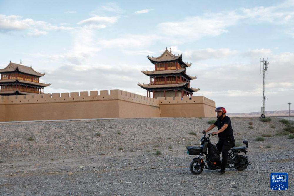 7月13日,李森結(jié)束一天的工作離開(kāi)甘肅嘉峪關(guān)關(guān)城景區(qū)騎電動(dòng)車回家。新華社記者 方欣 攝
