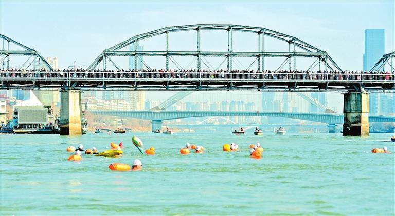 原標(biāo)題:蘭州市第35屆元旦黃河冬泳表演舉行