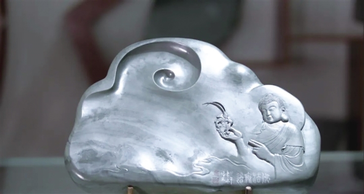 政策支持、資金投入、行業(yè)協(xié)會(huì)與合作組織的建立讓洮硯產(chǎn)業(yè)在瓜州穩(wěn)穩(wěn)扎下了根。在這片全新的文化土壤上,碧綠如藍(lán)的洮硯石汲取靈感,雕刻者以“一帶一路”為主題,以敦煌壁畫(huà)和瓜州張芝、玄奘、石窟、邊關(guān)等元素為題材,將絲路文化和洮硯制作技藝融合,打造出富有地域特色的文化旅游藝術(shù)產(chǎn)品。