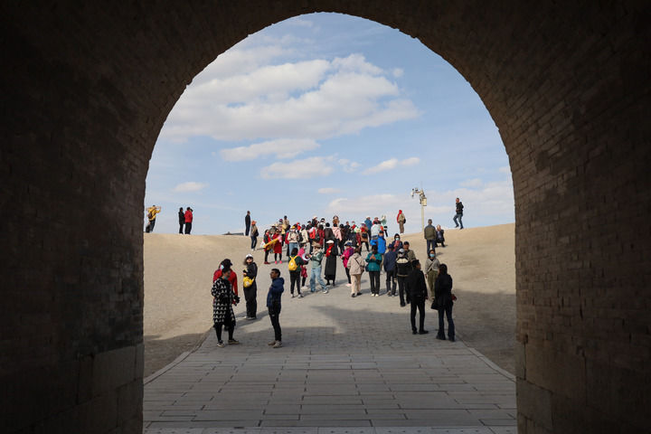 2023年5月10日,游客在嘉峪關關城景區(qū)游玩。 新華社每日電訊記者 馬希平 攝