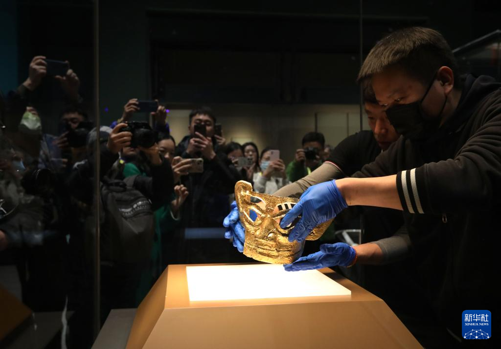 當日,四川廣漢三星堆遺址出土的珍貴文物——金面具和豎披發(fā)青銅人像在上海博物館東館特展廳內開箱,移入展柜。坐落于黃浦江東岸的上海博物館東館將于2月2日啟用,開幕展覽“星耀中國:三星堆·金沙古蜀文明展”將對公眾開放。