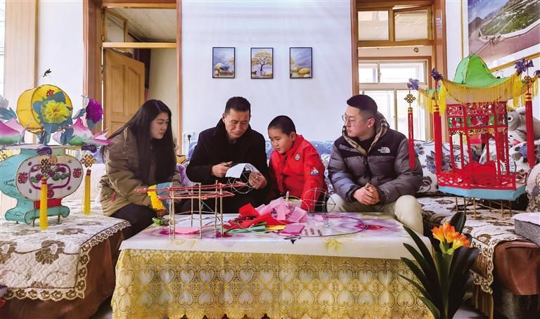 正月初十,記者走進魏世發(fā)家中,院中一盞盞精美的花燈擺放有序,色彩鮮艷、栩栩如生,呈現(xiàn)出皋蘭傳統(tǒng)手工花燈技藝的魅力。朱榮亮是石洞小學二年級學生,一次偶然的機會接觸到什川花燈,便產(chǎn)生了濃厚的興趣。他說:“以前見到花燈我就非常喜歡,今天媽媽專程帶我來到魏爺爺家學做花燈,非常有趣。以后有機會,我會帶著對花燈感興趣的同學來魏爺爺家跟他學做花燈。”