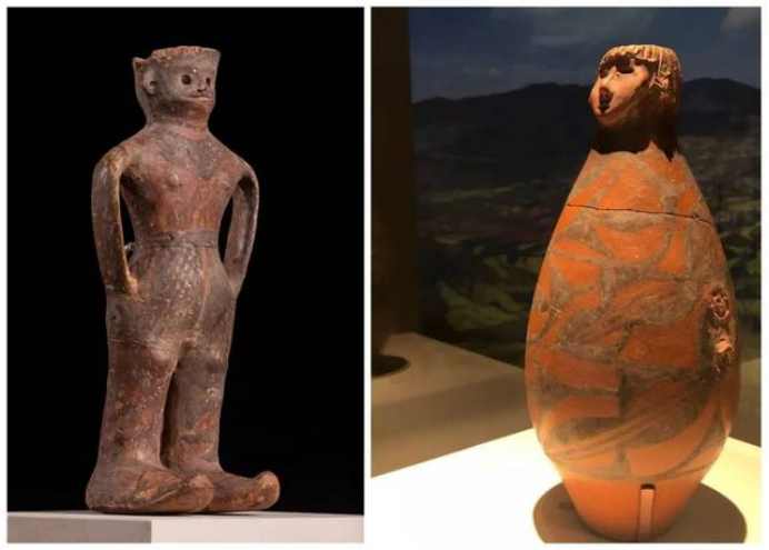 隴東有少女,而位于河西的玉門火燒溝同樣出土了一件距今3700多年的人形彩陶罐,被人們稱做“河西少年”。在2019年“少女”與“少年”這一對(duì)“金童玉女”就已經(jīng)邂逅了,2019年中國國家博物館展出“絲路孔道——甘肅文物精華展”時(shí),在展覽序廳門口了生了這樣一場友愛的“接力”。隴東大地灣的可愛“少女”——人頭形器口彩陶瓶說:“出來有一陣子了,在京城過了端午節(jié),該回家了!在京的時(shí)間雖短,但我很高興作為代表在國家博物館迎接全國、全世界的觀眾,希望還有機(jī)會(huì)可以再來!”。河西火燒溝的酷“少年”——人形彩陶罐說:“您回家了,我接替您的工作,在展覽的大門口,繼續(xù)帶領(lǐng)觀眾領(lǐng)略多彩厚重的甘肅歷史文明!”