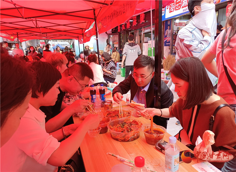 當(dāng)日,甘肅省文旅廳和天水市共同舉辦的“甘肅麻辣燙及特色美食大PK”和“甘肅文創(chuàng)非遺市集展銷(xiāo)”活動(dòng)繼續(xù)吸引大量游客。
