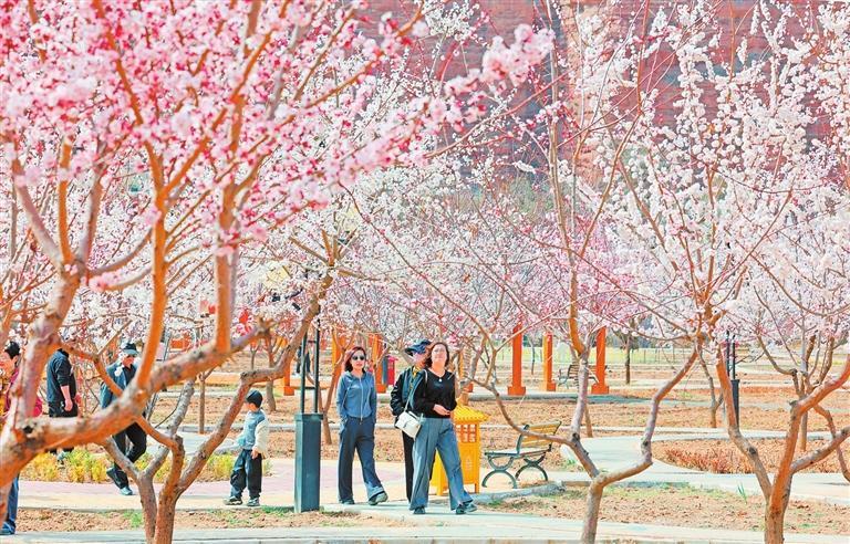 游客在“隴上杏花第一村”東鄉(xiāng)縣唐汪鎮(zhèn)河沿村賞花觀景。 新甘肅·甘肅日報(bào)記者 田蹊