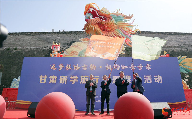 活動(dòng)上,甘肅文旅推介大使介紹了即將由江蘇前往甘肅研學(xué)的團(tuán)隊(duì)、旅行主題和線路,甘肅省文旅廳、江蘇省文旅廳分別向“絲綢之路”主題研學(xué)旅行團(tuán)隊(duì)、“紅色文化”主題研學(xué)旅行團(tuán)隊(duì)授旗。