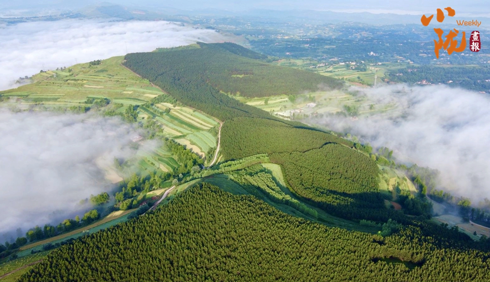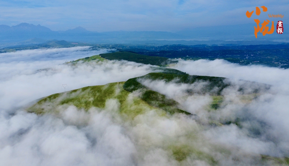 無山不飛云,無云不繞山。滿眼翠綠的山峰在縹緲的云海中,若隱若現(xiàn),云海翻涌,美似一幅山水畫。
