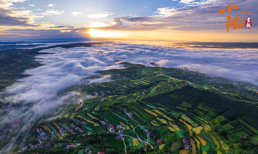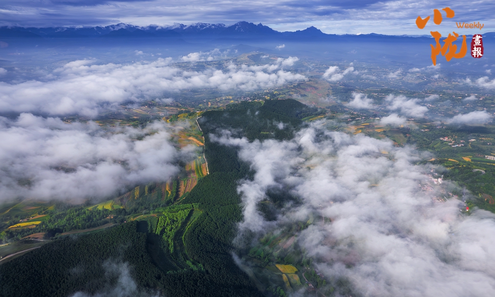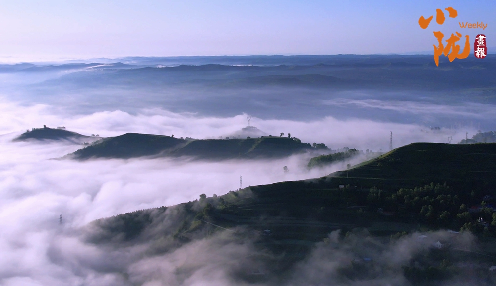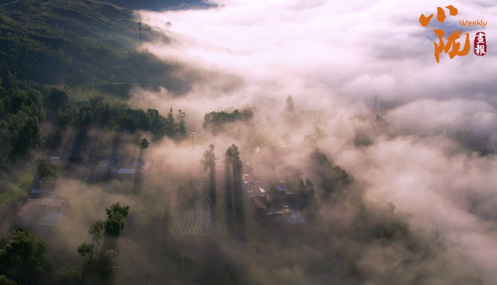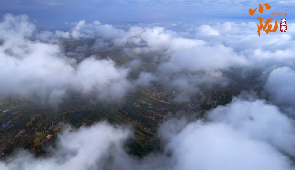從高處俯瞰,白色的云海在大地上空翻騰涌動(dòng),時(shí)而聚攏,時(shí)而消散,田園、村莊在云霧中時(shí)隱時(shí)現(xiàn),如夢如幻。