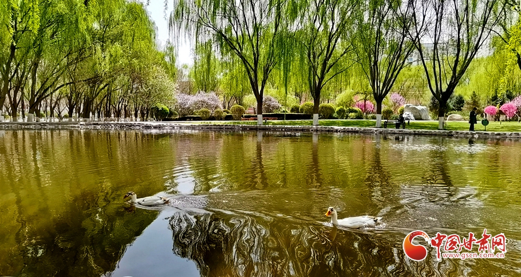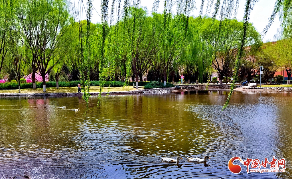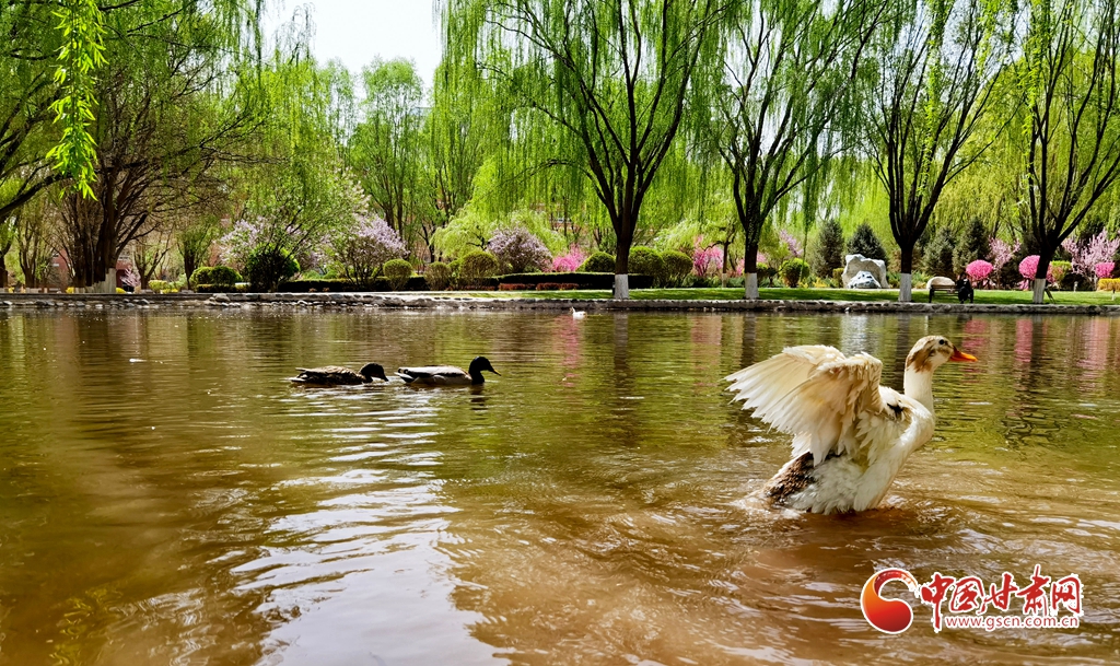 4月14日清晨,位于甘肅省張掖市河西學(xué)院的明理湖畔,春風(fēng)拂柳,鴨子嬉戲,空氣中不時飄來花香縷縷,到處一派春意盎然的美景。