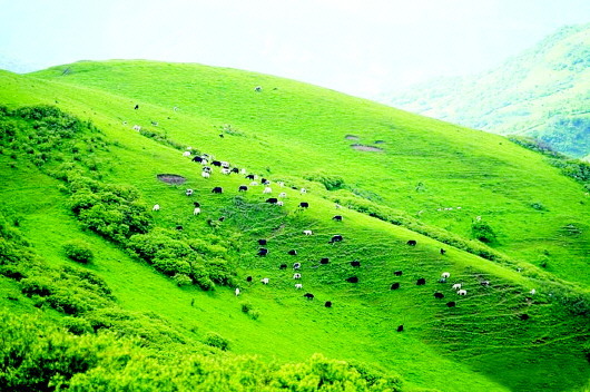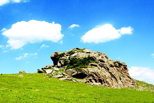 秦人遠(yuǎn)去了,只留下那些讓后人至今懷想不已的地名,諸如石鼓山、景墩梁、牧馬梁、上店子、下店子、大卜峪、瓦泉峪等,而尤以石鼓山最為著名,著名得連那部白發(fā)三千丈的《水經(jīng)注》里,都記載著它的故事:“山在梧中聚,有石鼓不擊自鳴,鳴則兵起。漢成帝鴻嘉三年,天水冀南山有大石自鳴,聲隱隱如雷,有頃止,聞?dòng)谄较宥偎氖铮半u皆鳴。石長(zhǎng)丈三尺,廣厚略等,在崖勒,去地百余丈,民俗名曰石鼓。”石鼓山是朱圉山最高峰,海拔2625米,山峰陡峭,人跡罕至,遠(yuǎn)望如石鼓,近看似臥牛,茂林幽泉,森秀無(wú)比。初春時(shí)節(jié),萬(wàn)物透綠而石鼓白雪皚皚;大雨前夕,飛鳥(niǎo)翱翔而山上煙云彌漫。更為神奇的是,山丘之巔,突兀一石,酷似一頭臥北朝南的耕牛,翹首做犀牛望月之狀,人稱臥牛山。臥牛山石頸之下,有一巨石,其面圓而平,每當(dāng)正午陽(yáng)光直射之時(shí),遠(yuǎn)遠(yuǎn)望去,石面宛如獸皮所蒙,恰如一面威風(fēng)凜凜的巨型戰(zhàn)鼓,恍惚之中,有如雷聲隱隱而來(lái),民呼之曰石鼓,石鼓山因此得名。石鼓山素來(lái)以厚重的人文歷史和優(yōu)美的草原風(fēng)光而著稱,尤為聞名的“石鼓擎雪”,自古就是“甘谷八景”之一。千百年來(lái),石鼓山甘愿舍棄繁華,遠(yuǎn)離人世,在淡泊寧?kù)o的歲月中,固執(zhí)而堅(jiān)定地守望古坡,守望古坡人家。